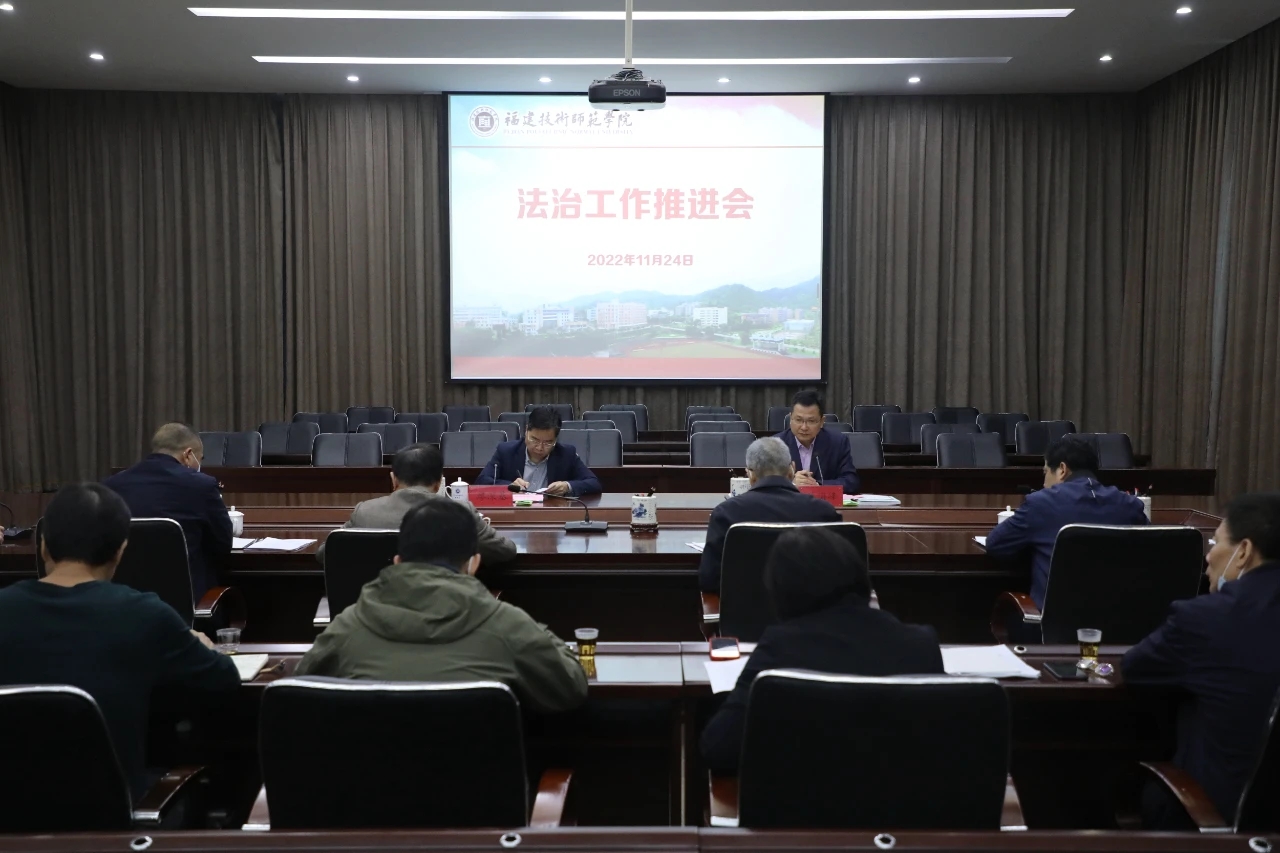 会上,党政办公室传达了福建省教育厅《关于组织开展学校法治工作测评的通知》(闽教法〔2022〕5号)等文件精神,介绍了《福建技术师范学院关于进一步加强法治工作的实施办法》和《福建技术师范学院法治工作任务与责任分工》等文件起草情况,并具体部署了2023年学校法治工作任务。