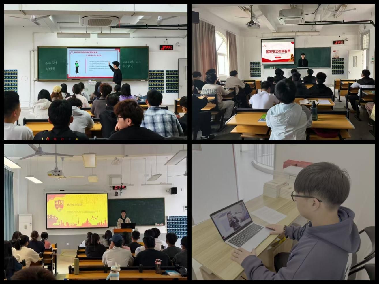 4月中旬以来,学校组织学生积极参与国家安全理论学习与普法宣传活动。通过线上途径、专题讲座、主题班会等形式,系统学习总体国家安全观及相关法律法规,对政治、网络等多领域安全认知显著提升。在实践中,学生主动参与宣传展板制作、社区安全宣讲,将所学知识转化为行动自觉,不仅自身筑牢安全防线,更成为国家安全知识的传播者,营造了“人人讲安全、事事为安全”的浓厚校园氛围。